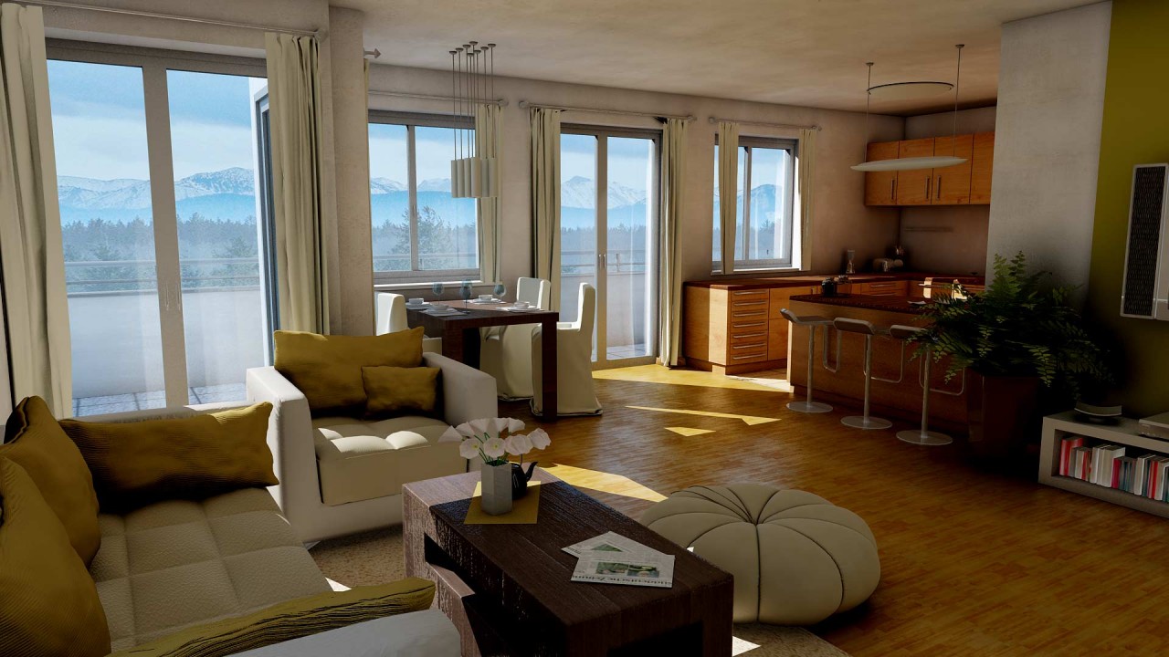 Interior rendering for several customers and developers. Often the pictures are printed on big screens which have a length of 10×15 meters. This in turn requires huge initial files as 3D rendering. Image sizes of up to 48,000 pixels inĀ  are possible.