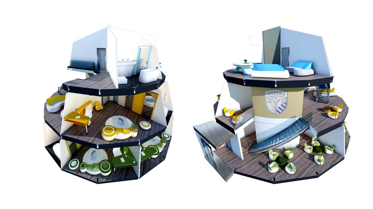Skyhouse baut Häuser und Ferienwohnungen auf Stahl wie ein Baumhaus. Für dieses Konzept habe ich einige Baupläne visualisiert.